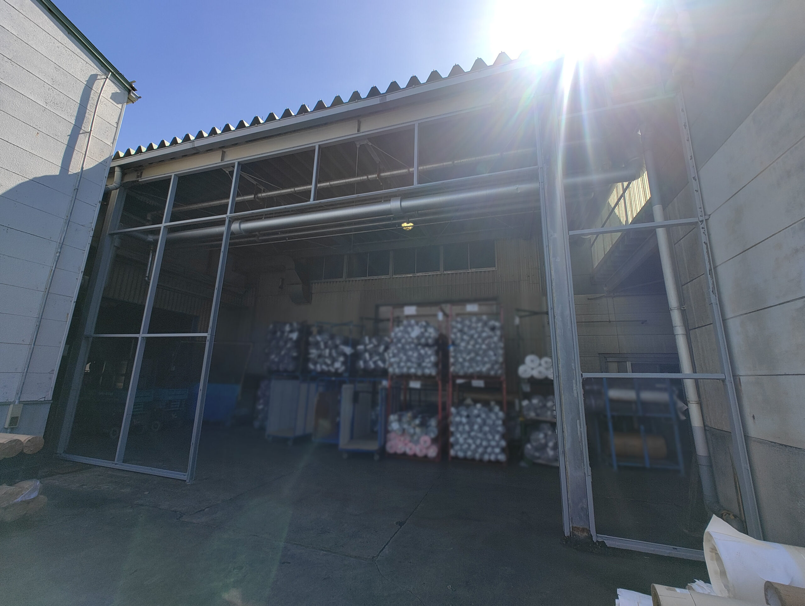 今回は、工場入口に設置されていた壁面シートの張替工事を行いました。